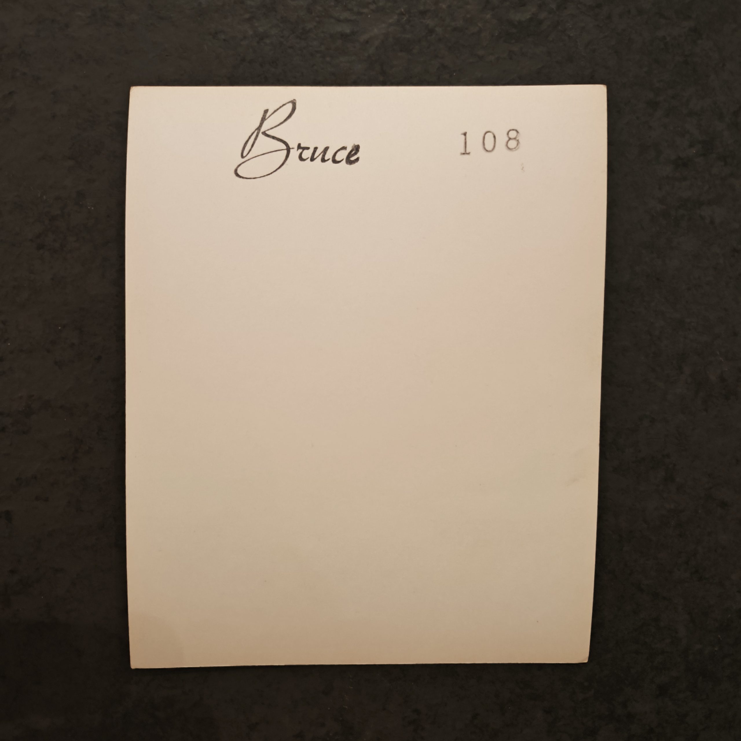 The technical quality of this silver gelatin print is truly superior. Bellas utilized his scientific background to ensure that his chemical processing produced a wide and stable tonal range. Moreover, the reverse side of this specific piece holds significant value for the collector. It features a rare, handwritten “Bruce” signature in script alongside the production number “108.” This personalized marking provides an extra layer of intimacy and authentication that is highly sought after in the high-end art market.