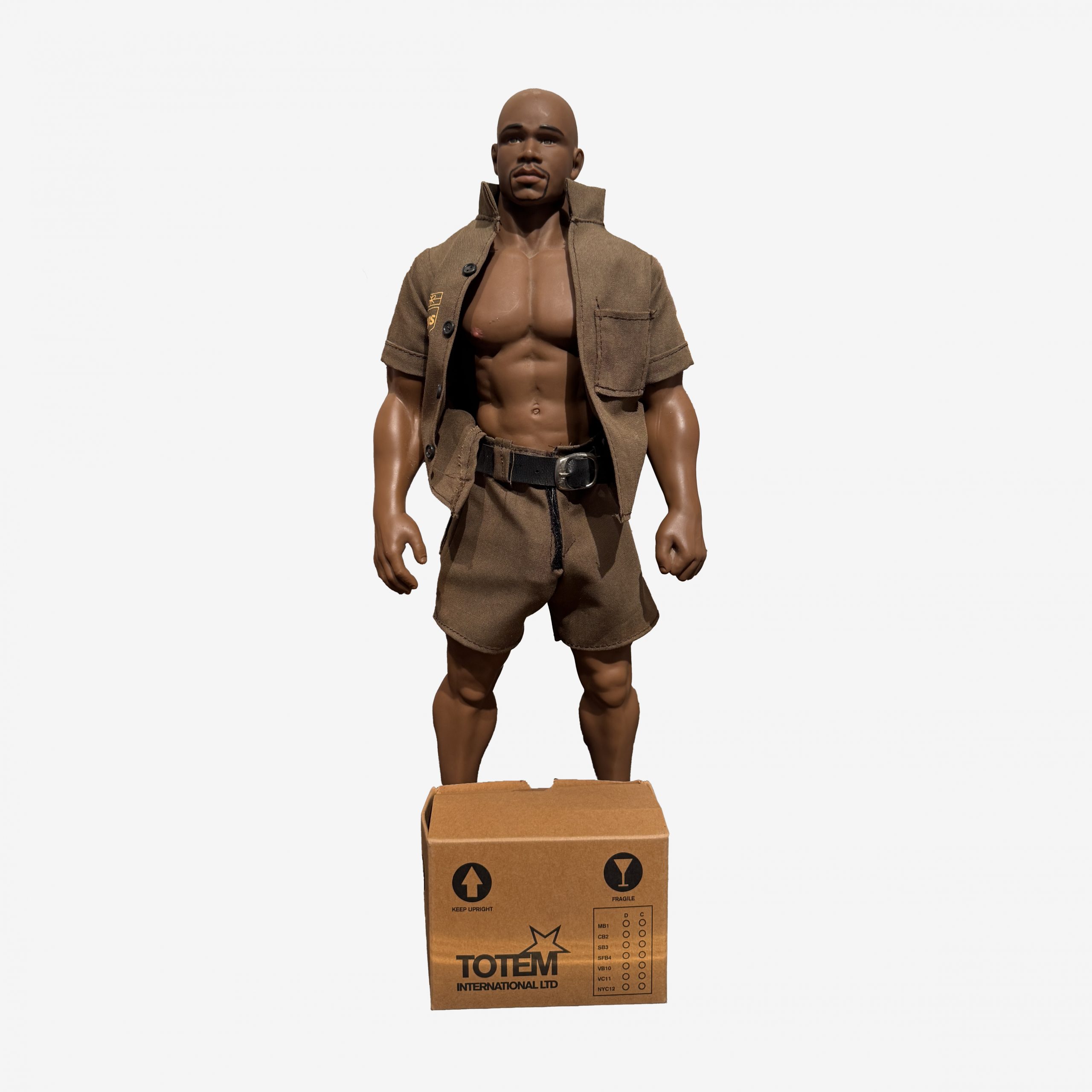 This version of Tyson is known both as the “Delivery Guy” and the “Stock Guy.” The naming depends on the source or catalog. He wears a uniform with an open shirt, short trousers, and a belt. The design highlights his muscular body and gives the figure a playful, sensual look. The small box marked “TOTEM International LTD” underlines the collectible nature of the toy.