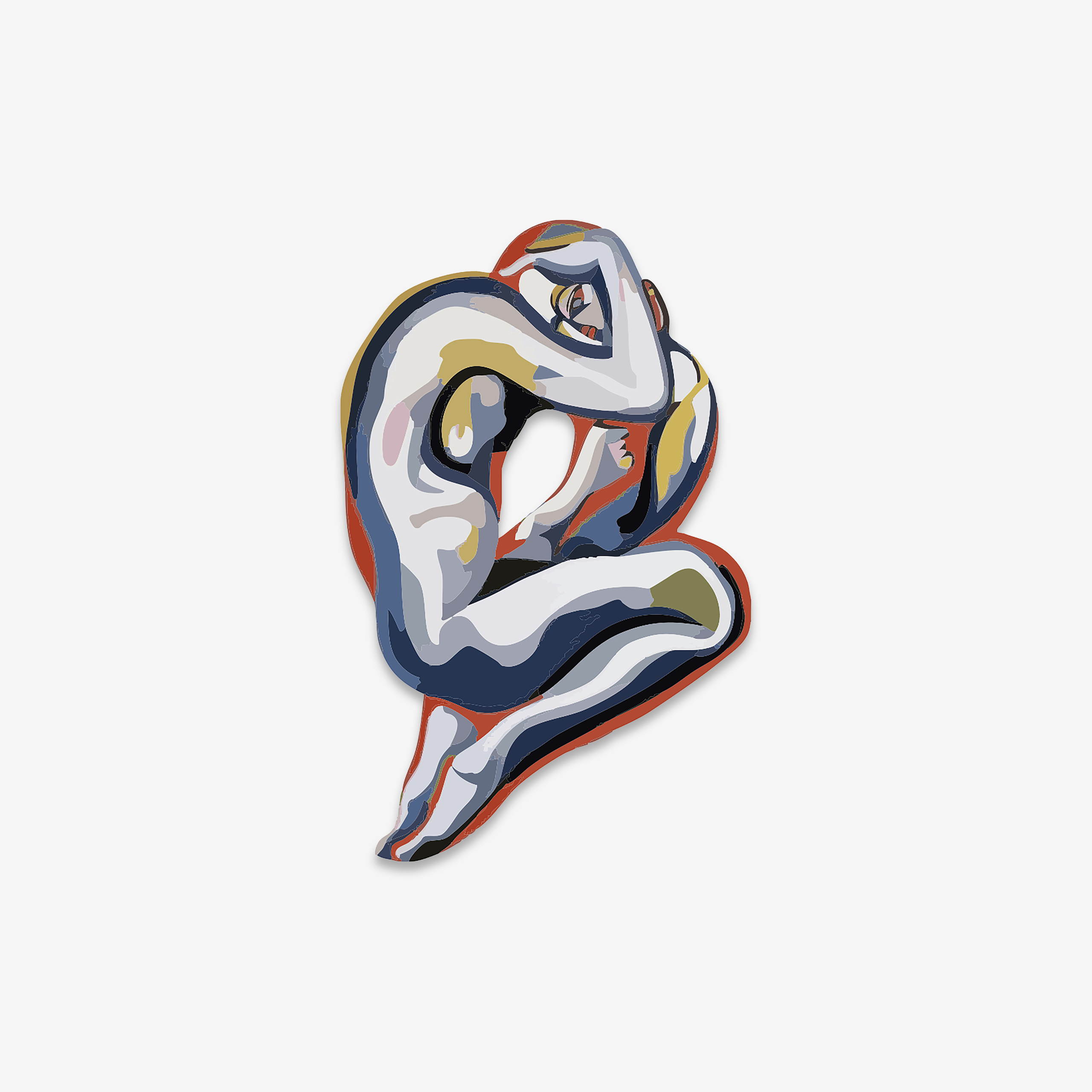 The composition features a solitary figure in a state of deep, silent reflection. This theme remains central to the artist’s career-long exploration of the human experience. He uses a sophisticated palette of metallic blues, deep oranges, and brilliant whites to map the anatomy. Instead of using hyper-realistic details, this Héctor López Methacrylate work defines the body through sweeping planes of color. This approach honors his expressionist roots while maintaining a sleek, contemporary aesthetic. It perfectly captures the complexity of identity within our current digital era.